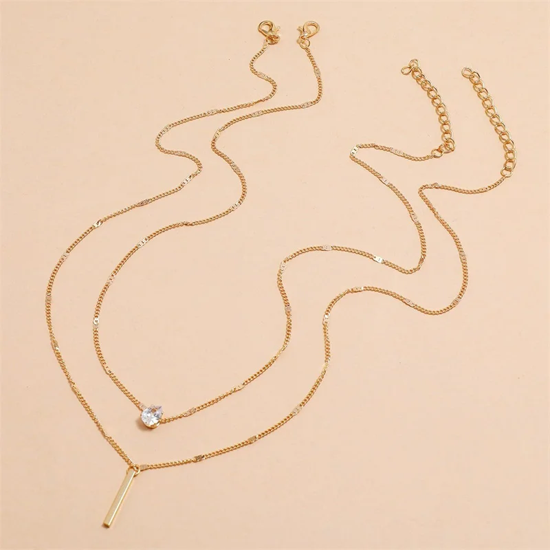 Crystal Zircon Heart Star Charm Layered Pendant Necklace Set for Women Charms Fashion Square Rhinestone Female Vintage Jewelry