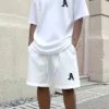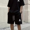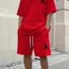 Solid Color Men’s T-shirt Shorts Set Quick-dry Breathable Short Sleeved Tee Drawstring Shorts 2-piece Set New Men’s Sports Suit